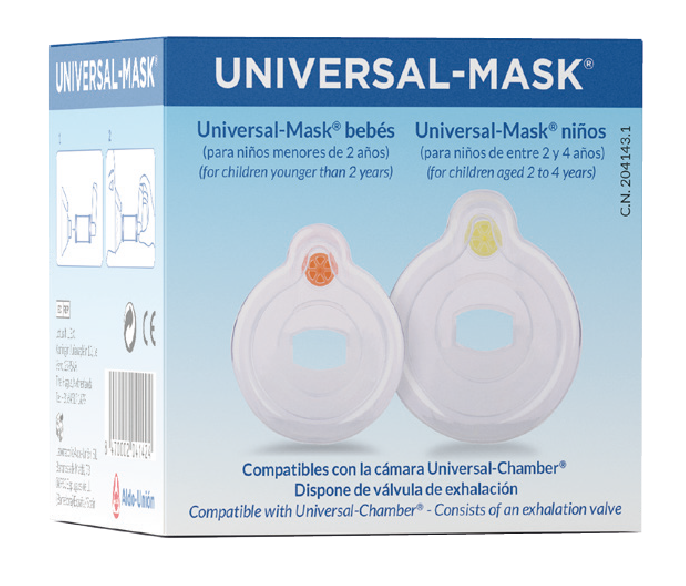 This pack contains two Silicone masks for use with the Universal-chamber inhalation chamber in infants and children, respectively. For children younger than 2 years, and children aged 2 to 4.