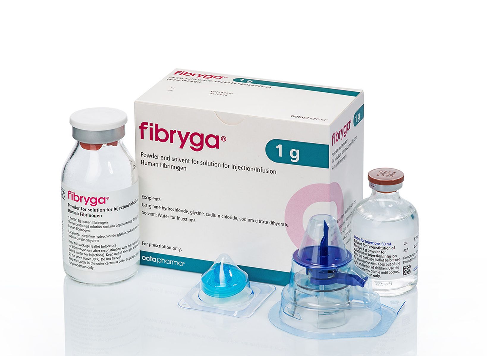 Indication: FIBRYGA is used for the treatment of bleeding in patients with congenital lack of fibrinogen (hypo- or afibrinogenaemia) with a bleeding tendency. It is also used for fibrinogen supplementation in patients with uncontrolled severe bleeding accompanied by acquired lack of fibrinogen.